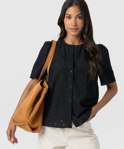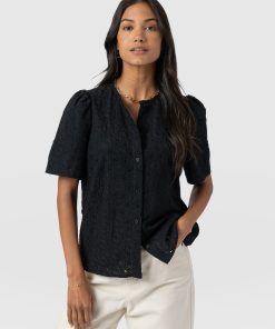 Saint + Sofia Women’s Tabitha Short Sleeve Blouse – Black | Black
