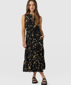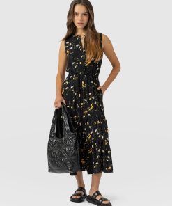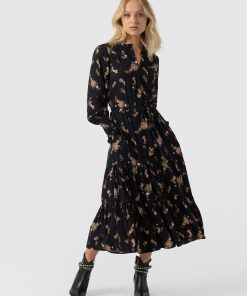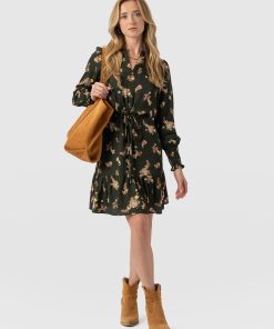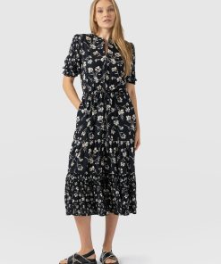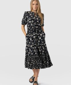 Saint + Sofia Women’s Olivia Zip Up Short Sleeve Dress – Black Spring Floral | Black Spring Floral