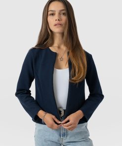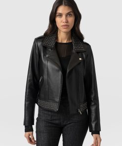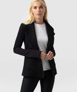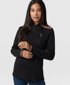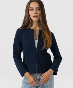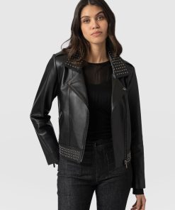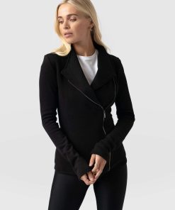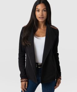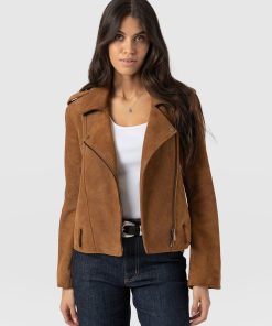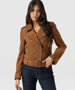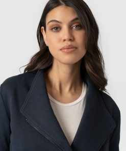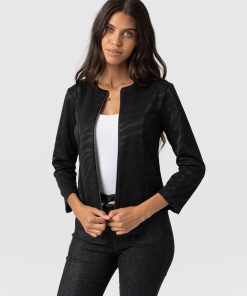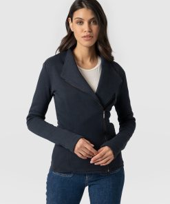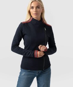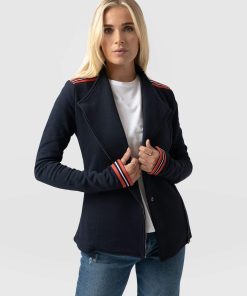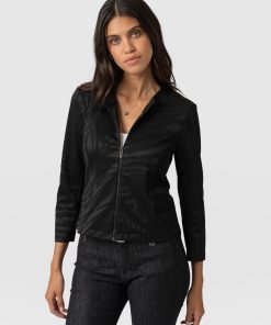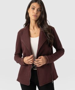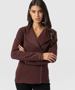 Saint + Sofia Women’s Cotton Biker Jacket – Maroon – Bronze Stripe | Maroon – Bronze Stripe