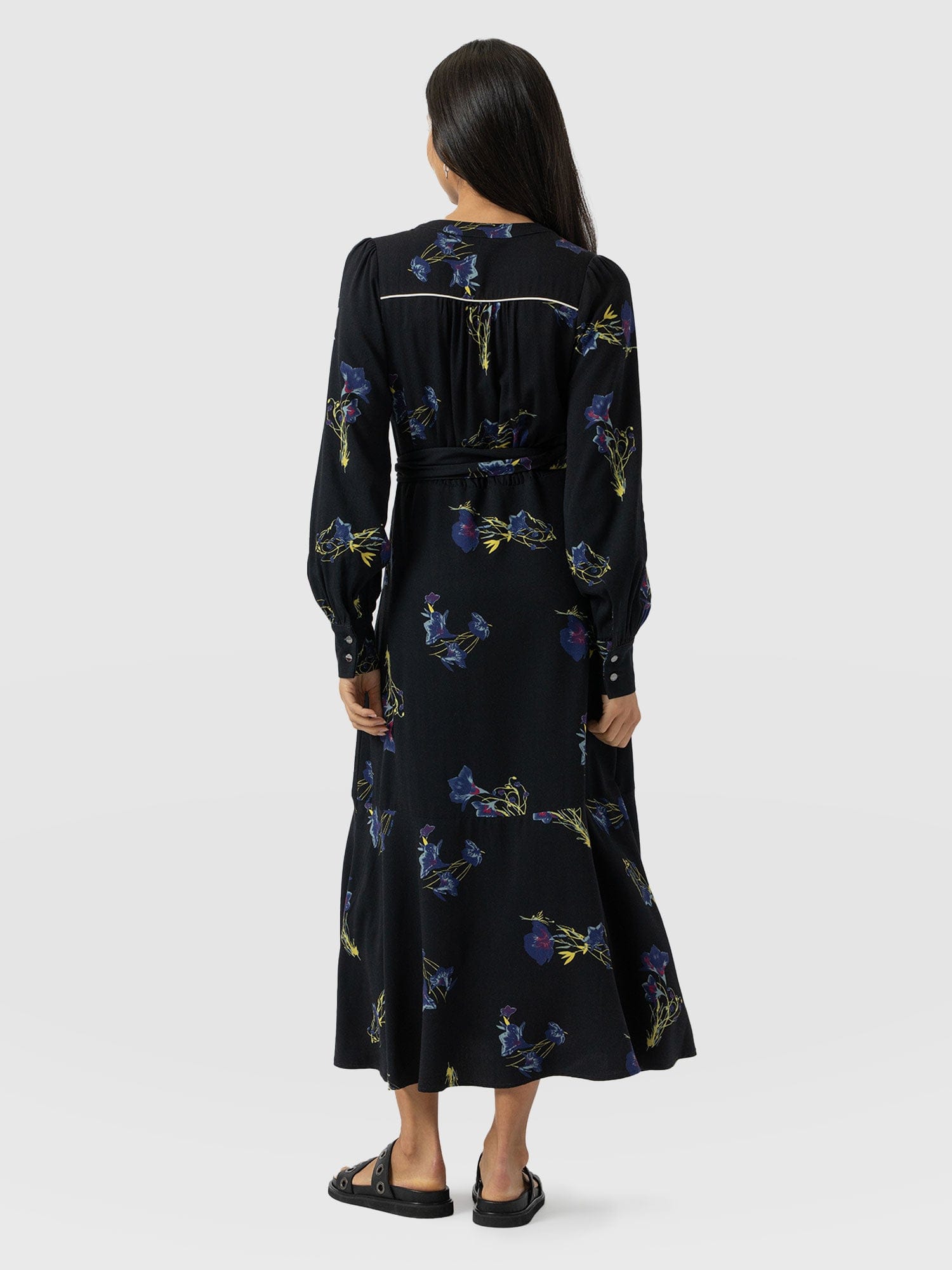 The Adaline Zip Up Dress is one of our newest best selling styles.This long-sleeve dress is handmade from a beautifully soft eco viscose and features our exclusive Blue Lily Gardens print to add a floral flourish to your wardrobe. It’s expertly handmade in Europe and includes an adjustable neckline that can be easily unzipped to suit your style. At the waist, a removable belt allows you to flatter the fit before flowing into a skirt. Wear yours with heeled boots and a leather jacket to complete the look.