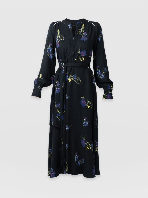 The Adaline Zip Up Dress is one of our newest best selling styles.This long-sleeve dress is handmade from a beautifully soft eco viscose and features our exclusive Blue Lily Gardens print to add a floral flourish to your wardrobe. It’s expertly handmade in Europe and includes an adjustable neckline that can be easily unzipped to suit your style. At the waist, a removable belt allows you to flatter the fit before flowing into a skirt. Wear yours with heeled boots and a leather jacket to complete the look.