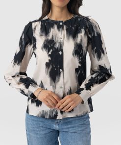 Meet the Amelie Blouse. This button-through style is handmade by our artisans in Europe using a beautifully lightweight cotton voile. It’s topped by a crew neckline and falls to long billowy sleeves that cuff at the wrist with branded gunmetal buttons. As for the print, the monochromatic florals offer a sophisticated take on seasonal blooms. Wear yours with our Keller Trousers and boots, or dress it down with a pair of Bowie Jeans.