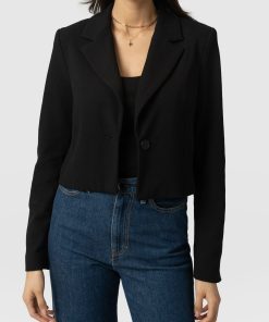 A blend between smart and casual, the Astrid blazer in black is the perfect jacket to wear on evenings out or weekend soirees. It uses traditional tailoring techniques to craft the collared neckline and notched lapels, while a relaxed finish in the form of a cropped hem lets you use this layer on more dressed-down occasions. Pair it with high-waisted pants and heels to complete the look.