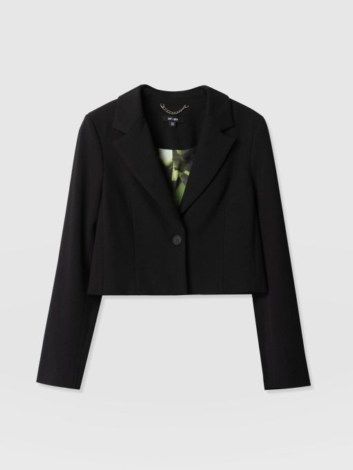 A blend between smart and casual, the Astrid blazer in black is the perfect jacket to wear on evenings out or weekend soirees. It uses traditional tailoring techniques to craft the collared neckline and notched lapels, while a relaxed finish in the form of a cropped hem lets you use this layer on more dressed-down occasions. Pair it with high-waisted pants and heels to complete the look.