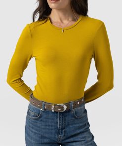 Saint + Sofia Women’s Austen Crew Neck Long Sleeve Tee – Mustard | Mustard