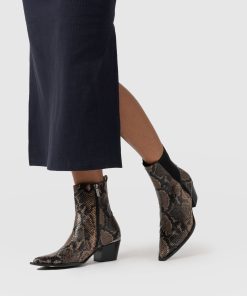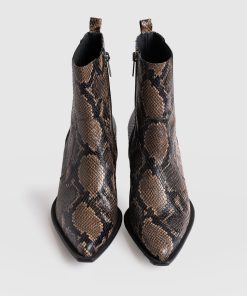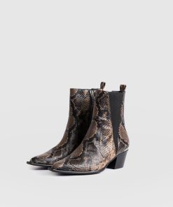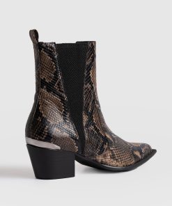 Stride with confidence and stomp with a serpentine edge in our new Billie Snake Boots. This statement pair is masterfully sculpted by hand using Portuguese leather and decorated with a snake-embossed texture for a safari-inspired edge. At the back, a glossy cap adds an elegant shine, while a small heel helps to elongate your frame. Slip yours on to dress up casual outfits or as a finishing touch to evening ensembles.