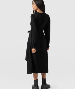 A stylish midi wrap dress handmade with a soft and sustainable eco viscose fabric, this functional midi-length dress features an open V-neckline and mid-length sleeves with a waist tie detail. Complete with a flirty frill cuff detail, it pairs perfectly with sneakers and a tote bag for daytime, or alongside some boots and a bucket bag for evening wear. What’s more, its versatile shape can be styled for the most casual or sophisticated occasions.