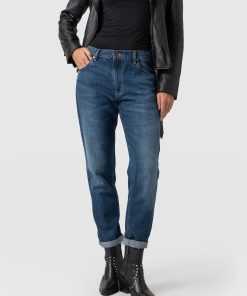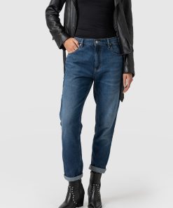 This classic boyfriend cut jean features a low rise and slim, cropped leg in a worn-looking indigo blue wash. Instantly comfortable and designed for a perfect fit. Handmade with sustainable materials. Branded buttons and a tab with an adjuster on the back add extra detail, while the subtle Saint and Sofia embroidery on the back pocket adds a touch of sophistication. Style with a rolled-up leg and an orange Cavendish Square Neck Tee for the ultimate laid-back look.
