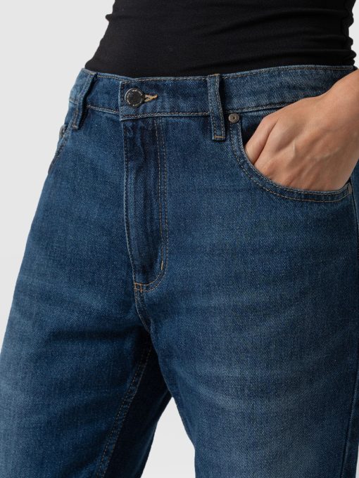 This classic boyfriend cut jean features a low rise and slim, cropped leg in a worn-looking indigo blue wash. Instantly comfortable and designed for a perfect fit. Handmade with sustainable materials. Branded buttons and a tab with an adjuster on the back add extra detail, while the subtle Saint and Sofia embroidery on the back pocket adds a touch of sophistication. Style with a rolled-up leg and an orange Cavendish Square Neck Tee for the ultimate laid-back look.