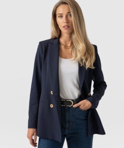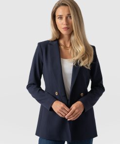 A classic, double-breasted blazer in navy that’s a wardrobe classic. We designed this with a comfortable, smart fit with plenty of room. We made it with the softest crepe fabric we could find. We’re pretty sure you’ll be wearing this in years from now. Each style is hand tailored for the perfect finish. It can easily be styled up for work or down for weekends. Pair with jeans or pants. (it’s such a popular style we’ve made it in a few colours).