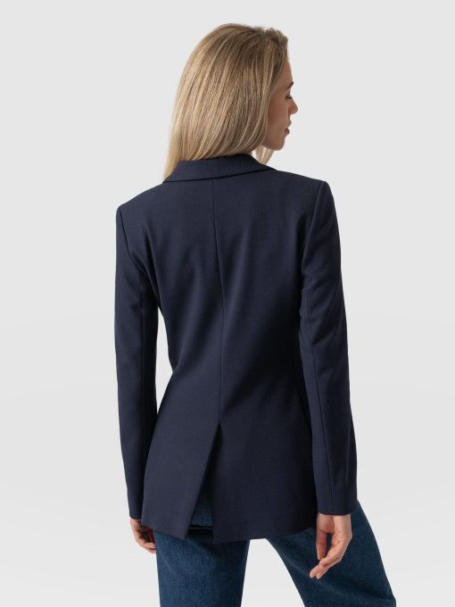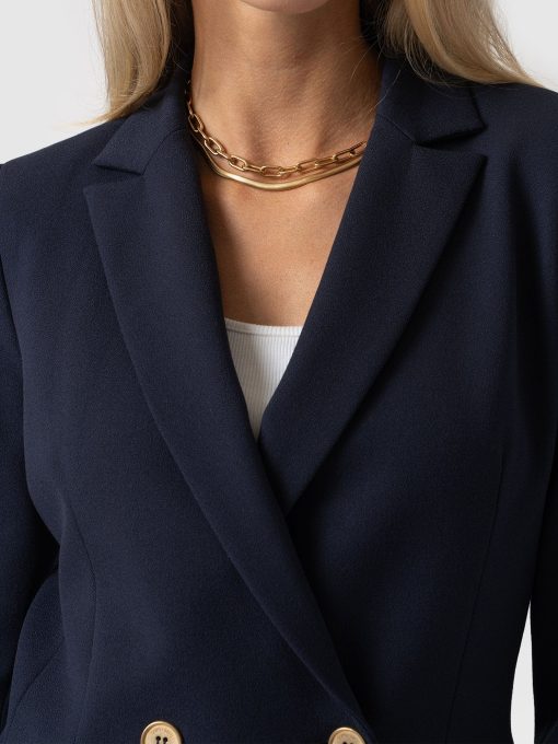 A classic, double-breasted blazer in navy that’s a wardrobe classic. We designed this with a comfortable, smart fit with plenty of room. We made it with the softest crepe fabric we could find. We’re pretty sure you’ll be wearing this in years from now. Each style is hand tailored for the perfect finish. It can easily be styled up for work or down for weekends. Pair with jeans or pants. (it’s such a popular style we’ve made it in a few colours).