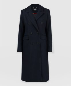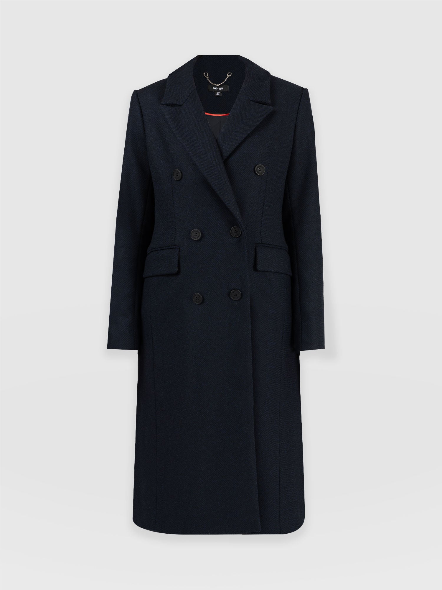 The Cambridge Coat in Navy Chevron is a striking long-line double-breasted overcoat that will add a touch of polish to any look. Crafted from a gorgeously soft Italian wool fabric with a delicate chevron design, it is both timeless and interesting. Works equally well as a finishing touch to work looks as it does adding some sophistication to your weekend easy denim ensemble.
