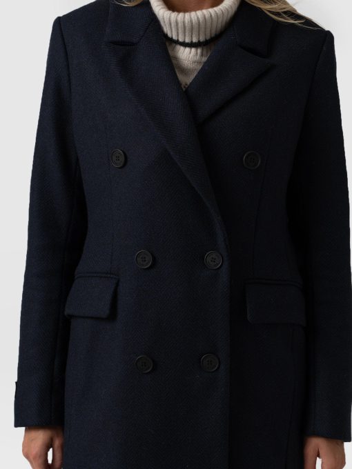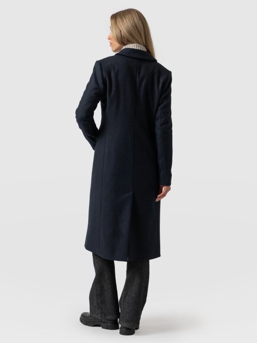The Cambridge Coat in Navy Chevron is a striking long-line double-breasted overcoat that will add a touch of polish to any look. Crafted from a gorgeously soft Italian wool fabric with a delicate chevron design, it is both timeless and interesting. Works equally well as a finishing touch to work looks as it does adding some sophistication to your weekend easy denim ensemble.