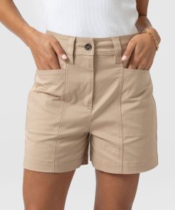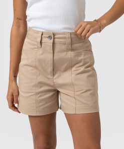 A pair of fitted cargo shorts in beige made from organic cotton and infused with a hint of stretch for all-day comfort. They’re topped by a high-rise waistband and trimmed with tonal stitching for a casual finish. Each pair is handmade by skilled artisans and features large front pockets to store all your daily essentials. Style yours with a white tee and your favourite sandals to create a relaxed seasonal look.