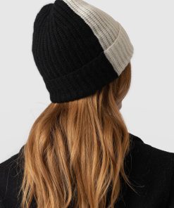 Saint + Sofia Women’s Cashmere Beanie – Cream/black | Cream & Black