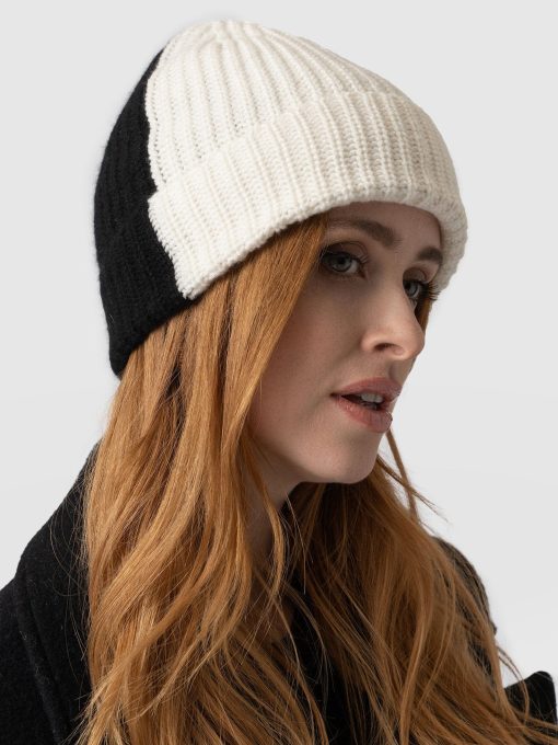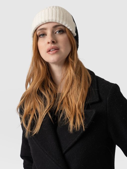 Saint + Sofia Women’s Cashmere Beanie – Cream/black | Cream & Black