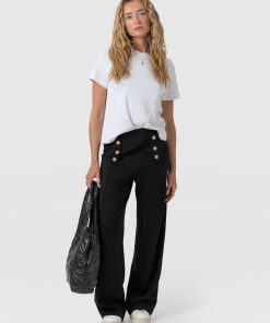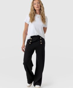 A classic wide leg pant style, made with the softest Ponte di Roma fabric from Italy and gold button detail. High-waisted, comfortable and relaxed with an elasticated waistband finish and pull-on construction. We love the soft Ponte di Roma fabric because its wrinkle and crease free with a beautiful drape. Each style is handmade in our studios with discrete stitching. Perfect for work or weekends, style up with heels or down with sneakers or sandals.