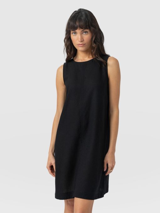 A classic shift dress with a lightweight linen feel, the Corinne Linen Shift Dress in Black is perfect for warmer weather looks. Its panelled construction is topped by a crew neckline and shaped to a sleeveless silhouette with a thigh-grazing skirt. This easy-to-wear style takes inspiration from our best-selling Corinne Tunic Top and is handmade by skilled artisans in Europe who ensure the highest quality finish. Wear yours with the Ivy Frayed Espadrilles to complete the look.