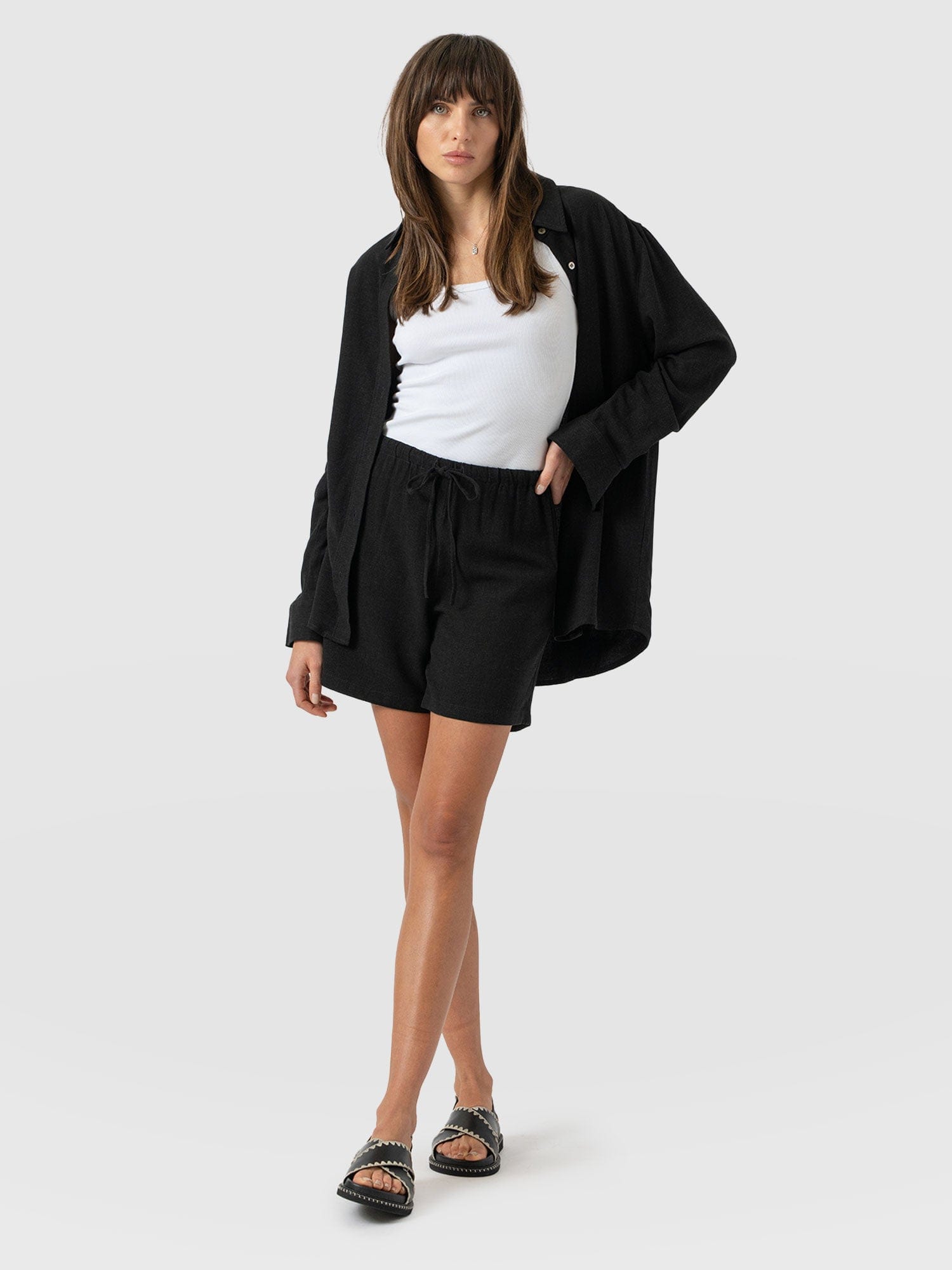 The perfect addition to your summer wardrobe – the Corinne shorts in black are designed with warmer weather in mind. They’re stitched by hand from a lightweight linen blend that keeps you cool and comfortable on sun-soaked days, and they feature a drawcord waistband that can be adjusted to create the perfect fit. Style yours with the matching shirt or tunic for a resort-inspired co-ord.