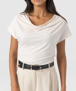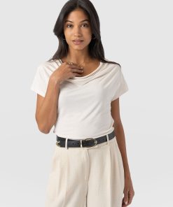 The cowl neck tee is an easy, instantly wearable style. It’s a perfect alternative to the classic crew or v-neck tee styles. Comfortable and stylish with a silky smooth hand feel. We designed it with a relaxed, easy fit and made it with a sustainable eco viscose fabric called Ecovero™. Each style is made in our studios in Europe and finished by hand. Pair it with jeans or leggings for a casual look or with pants and heels with a short leather jacket for work (with some attitude).
