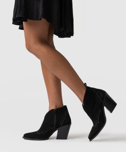 Welcome a bit of Western style into your wardrobe with the Dallas studded ankle boot. Made with soft suede and finished off with mini gold studs to accent the western inspired style. A slimline ankle boot with pointed toe and chunky heel, this on trend shape works well with anything from dresses, to skirts or jeans.
