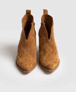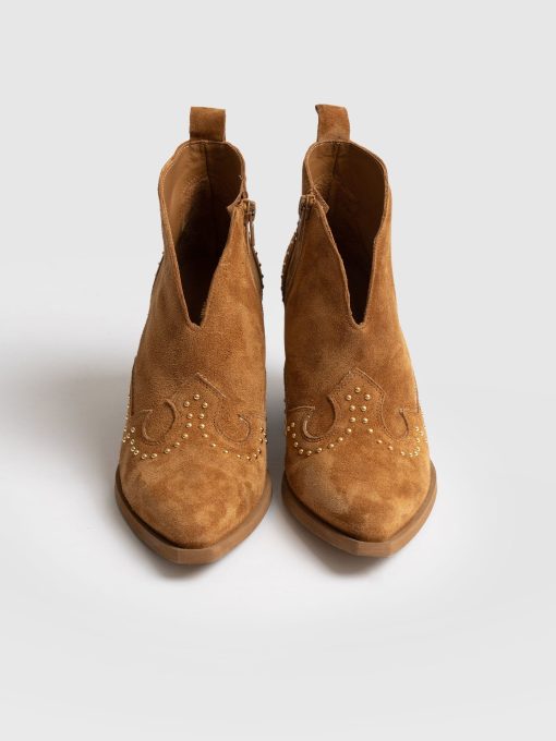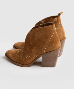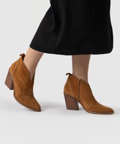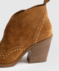 Welcome a bit of Western style into your wardrobe with the Dallas studded ankle boot. Made with soft suede and finished off with mini gold studs to accent the western inspired style. A slimline ankle boot with pointed toe and chunky heel, this on trend shape works well with anything from dresses, to skirts or jeans.