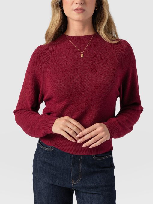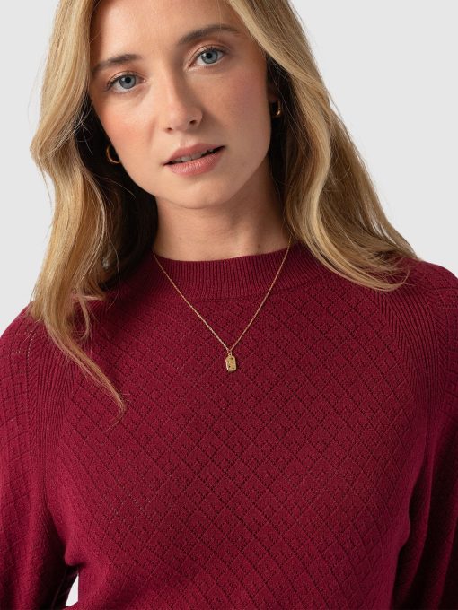 A beautiful, lightweight knitted sweater in Deep Pink with a diamond lace hole detail across its entire frame. We designed this style to have a slimmer fit and topped it with a ribbed collar and long sleeves. Instantly comfortable and made with a soft and smooth eco-viscose fabric called Ecovero™, it’s handmade in our studios in Europe and finished with discrete, tonal stitching. Wear it for work with pants or with jeans for a more casual look on a weekend.