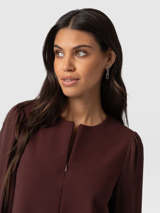 The Esme Zip Up Dress in maroon is the perfect showcase of elegance paired with functionality. Its jersey body and breezy georgette sleeves are masterfully handmade by skilled artisans in Europe to ensure the highest quality finish and an instantly comfortable frame – while the zip-front fastening offers flexibility with styling, meaning you can easily switch between necklines depending on the occasion. Pair yours with chunky boots to create a look with attitude.
