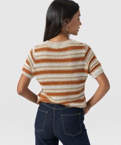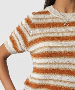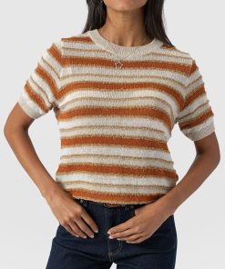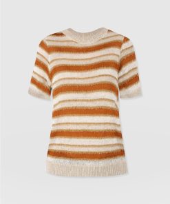 Meet the Fearne Knit Tee: this lightweight knit is shaped into a classic crew-neck T-shirt but crafted with soft fibres of wool and silk. Offering an elevated take on the traditional tee, this handmade design features ribbed cuffs for a warming aesthetic and textured stripes across the bodice for a unique look. Style yours with black Maeve Pants and boots for a style with a contemporary edge.