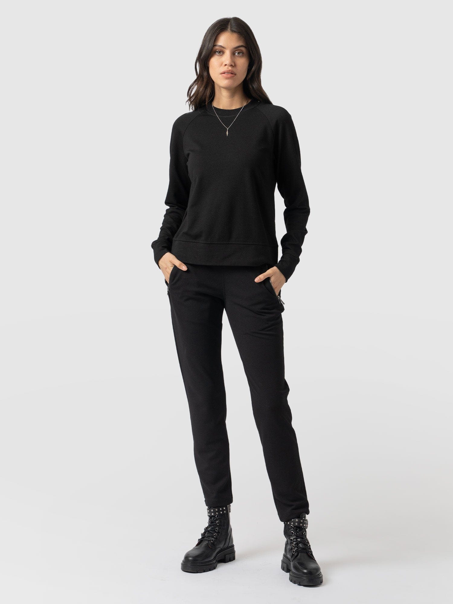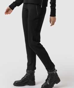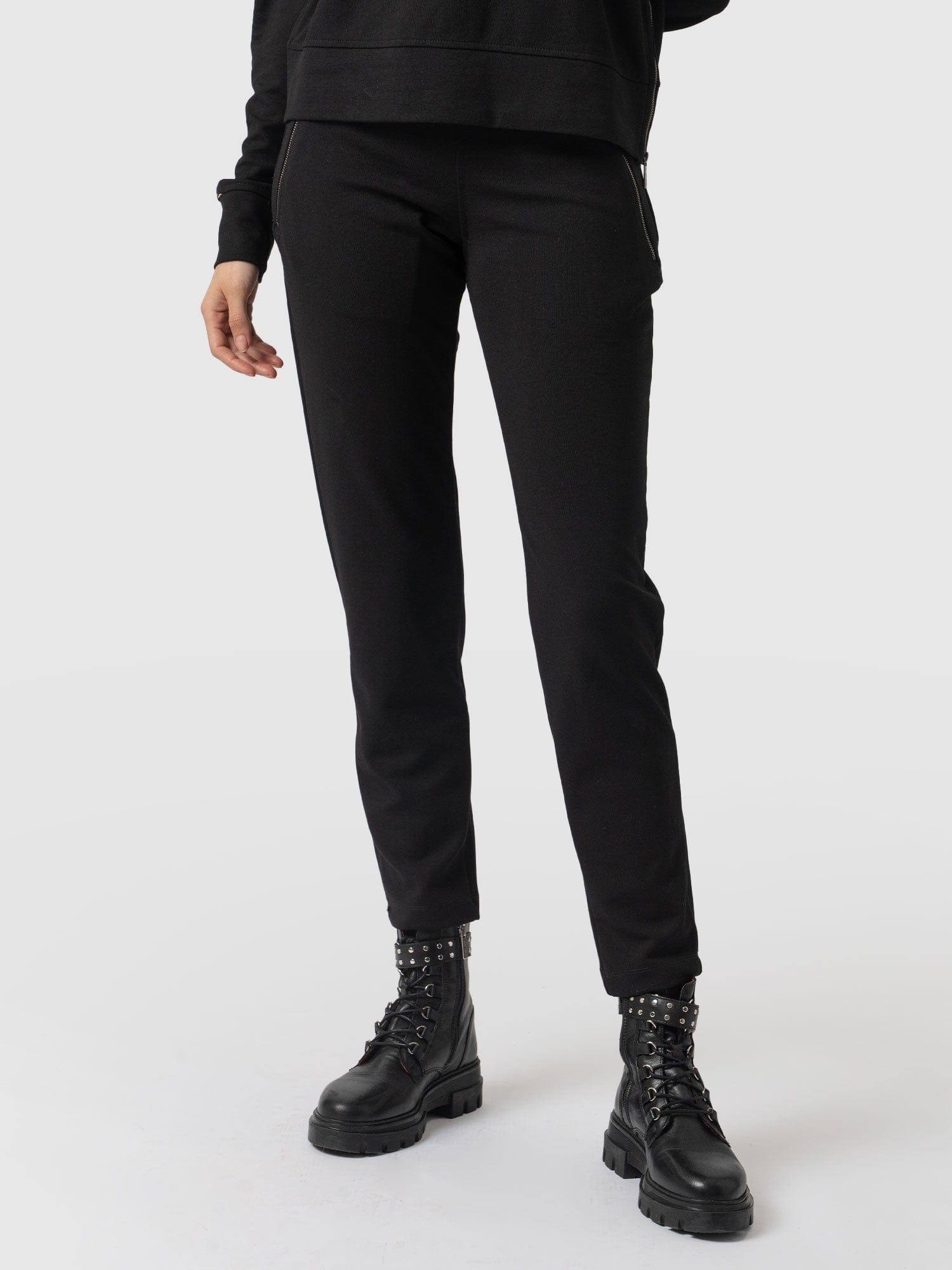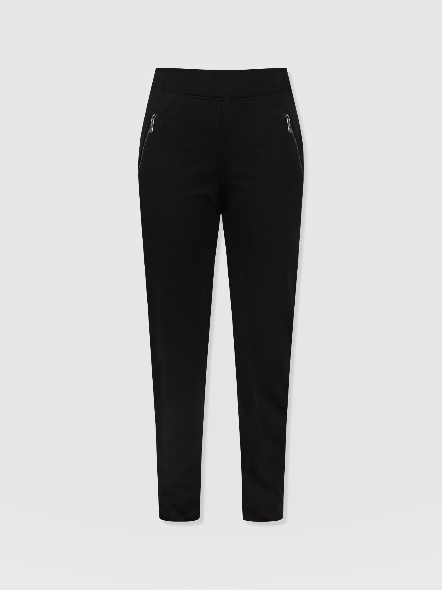 A modern take on our best-selling Finsbury Pant, these mid-waisted pants are designed for ultimate comfort with an elasticated waist. Expertly crafted in our European studios with a soft and durable ponte di roma fabric, they are wrinkle and crease-resistant with a subtle drape. The black colour is versatile, and the zip detail adds a touch of sophistication. For a nautical look, style with the Morgan Sweater and your favourite sneakers, but for something more muted, pair them with the Austen Tee in white.