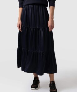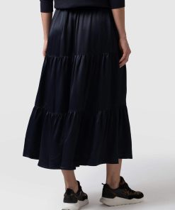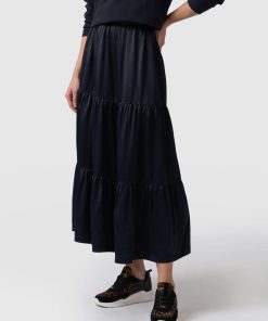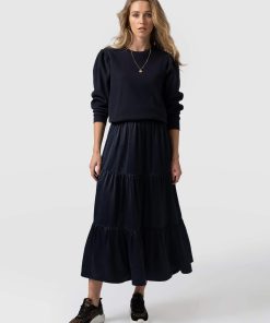 A classic midi skirt in navy viscose with a comfortable fit and feel. We designed this with a midi length and added a zipper for ease of use. It’s made with a soft and silky Lenzing viscose fabric that’s sustainable and has a beautiful drape. We only make a few at a time in our studios in Europe and finish each one by hand. Easily pair with sandals or sneakers for a casual look or with heels for a more formal look.