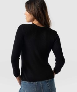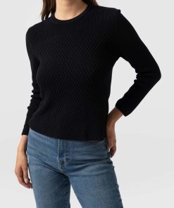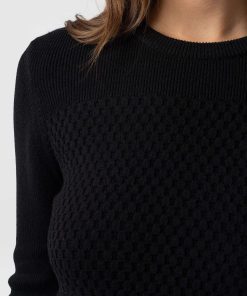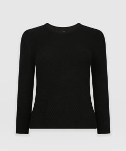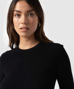 A beautiful rib knit sweater in black, designed for an elegant fit and a stylish look. Made with a soft and sustainable eco friendly viscose fabric that’s super smooth. We designed it with a honeycomb knitted pattern and finished with discrete stitching. Every style is made in our studios in Europe and made by hand. Pair perfectly with jeans or leggings on a weekend for a relaxed look or style with pants and heels for something more formal for work or evenings out.