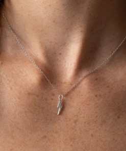 An elegant Astral Lightning Necklace in silver that can become a chic addition to your jewelry collection. Perfect for styling for work, weekends or as a gift for loved ones. This necklace features an elegant lightning design, blending timeless silver style with a touch of sparkle. Each necklace is handmade to guarantee precision and a quality that will last for years to come.