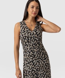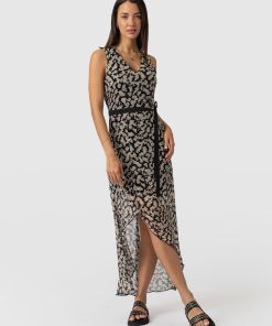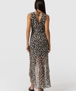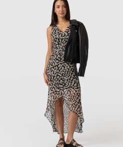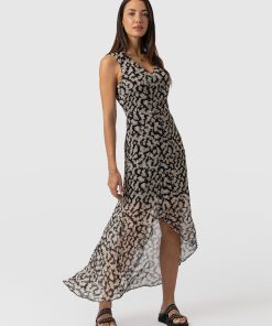 The Lexi High Low Dress in Black Confetti Petal is destined to be a statement piece in your wardrobe. It’s made from silky georgette fabric that offers a semi-sheer finish and features a plunging V-neckline that helps to accentuate your décolletage. The sleeveless design then falls into a skirt with an asymmetric hem. And at the back, a simple tie fastens at the top before leaving your skin on show. It’s a style that’s sure to turn heads.