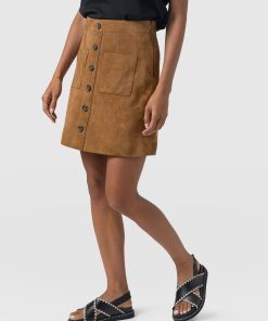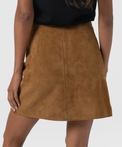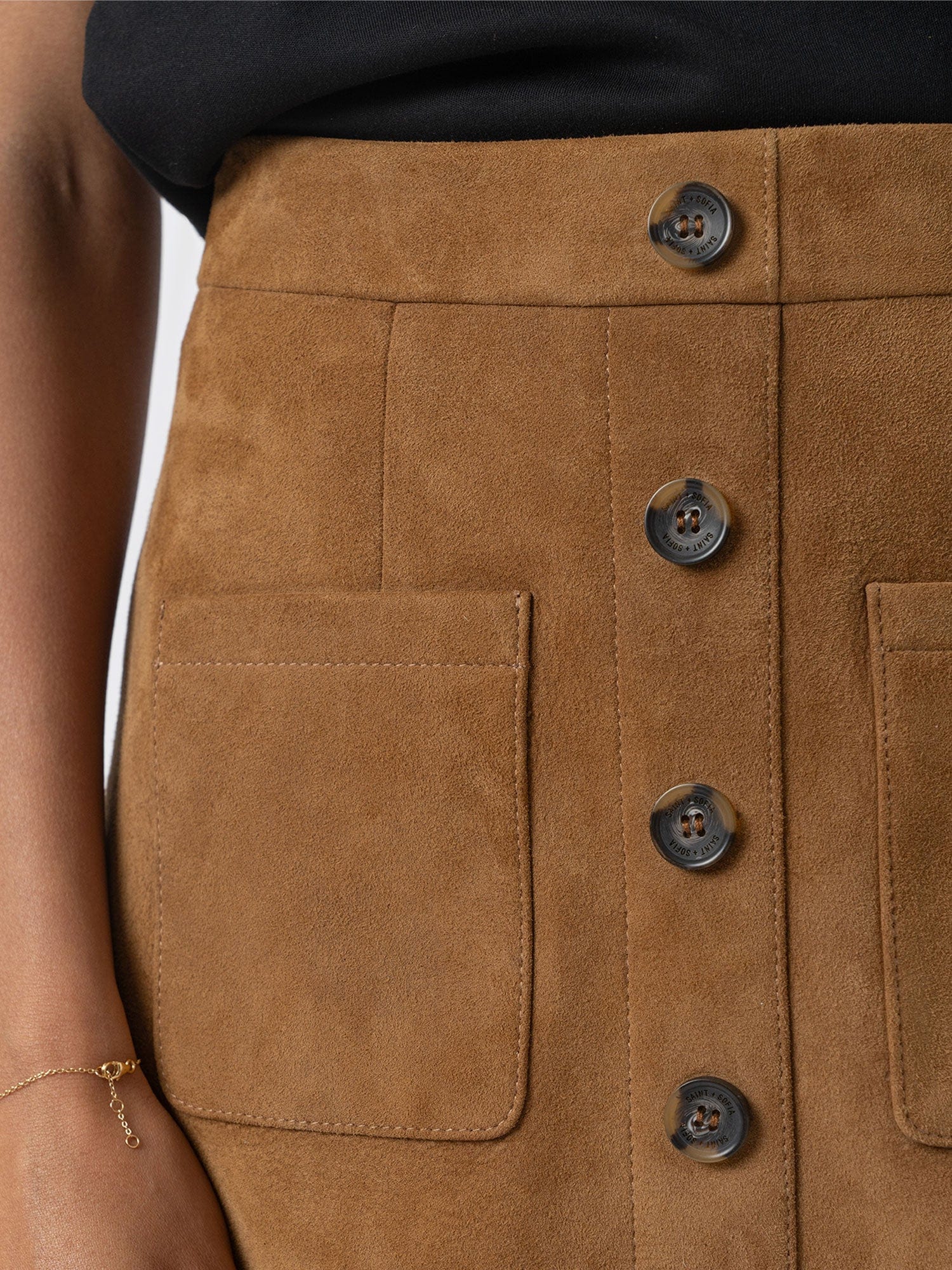 The Luther Mini Skirt is the perfect statement style to add to your seasonal wardrobe; the soft and smooth suede makes for the perfect transitional piece. It’s topped by a flat waistband before falling to a straight cut that skims just above your knees. At the front, horn buttons are sewn straight down the middle, while two patch pockets provide practical storage. Handmade to ensure the highest quality, it’s finished with waist darks to help shape and define your figure. Style yours with black tights, knee-high boots, and a chunky knit sweater.