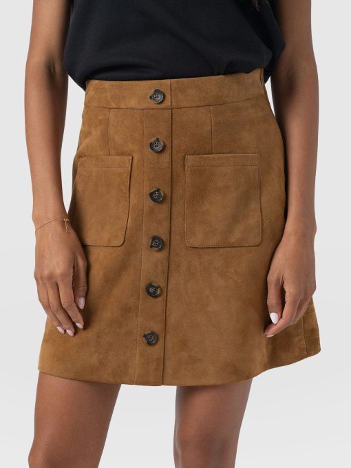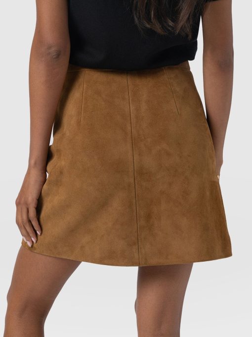 The Luther Mini Skirt is the perfect statement style to add to your seasonal wardrobe; the soft and smooth suede makes for the perfect transitional piece. It’s topped by a flat waistband before falling to a straight cut that skims just above your knees. At the front, horn buttons are sewn straight down the middle, while two patch pockets provide practical storage. Handmade to ensure the highest quality, it’s finished with waist darks to help shape and define your figure. Style yours with black tights, knee-high boots, and a chunky knit sweater.