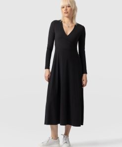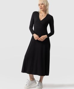 The Maggie Wrap Dress is a beautiful midi and handmade using a soft and sustainable eco-viscose. This chic style features a skin-baring V-neckline mock wrap and a full A-line skirt. Thanks to its long sleeves, it’s perfect for styling all year round; slip yours on in the summer with sneakers and in the winter with a jacket, tights, and boots.