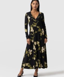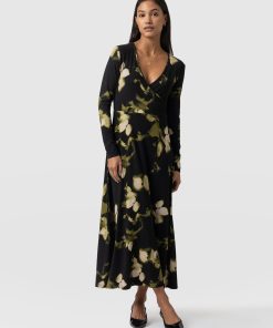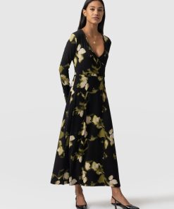 Saint + Sofia Women’s Maggie Wrap Midi Dress – Green Aurora | Green Aurora