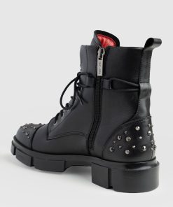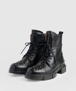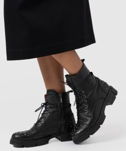 A studded tie-up boot in black handmade in Portugal using the softest leather and a chunky rubber sole. We only make a few of the Noho boots at a time to ensure every detail is finished to the highest quality. They have a wider fit to ensure you stay comfortable even after hours of walking, and they’re structured with a timeless design that you’re sure to be wearing years from now. Style them with pants, skirts, or dresses to create an on-trend look.
