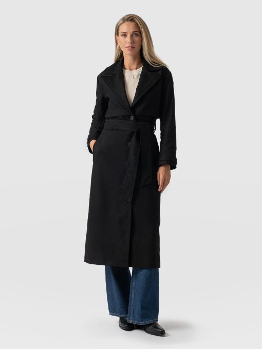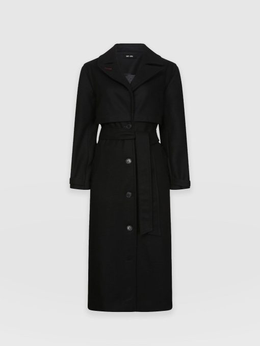A timeless overcoat in black made with the softest Italian wool that you can wear for years from now. Relaxed, comfortable fit with subtle details. Designed in our London studios with single, row tonal buttons, storm flaps for extra warmth and deep pockets (we love pockets). Easy tie waist makes for comfort adjustment. We tailored each style by hand in our studios in Europe to ensure the perfect stitching and finish.