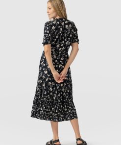 The Olivia Zip Up Dress with short sleeves is a seasonal take on its long-sleeved sister style. It’s beautifully handmade using a lightweight rayon and features an adjustable neckline that can be fastened fully for a classic crew or left undone for a more elegant V-neck – depending on your style. Its breezy skirt falls to a calf-grazing midi length and features a contrasting pattern around the hem for added detail. Wear yours with sneakers or sandals – the choice is yours.