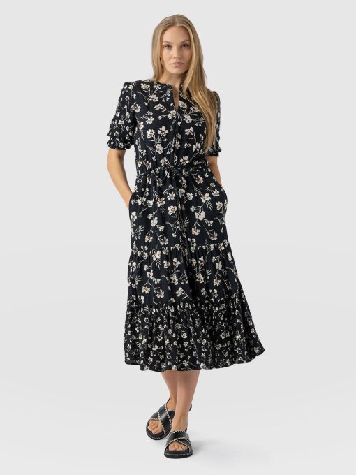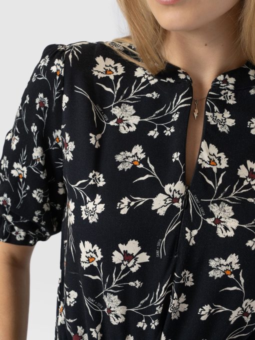 The Olivia Zip Up Dress with short sleeves is a seasonal take on its long-sleeved sister style. It’s beautifully handmade using a lightweight rayon and features an adjustable neckline that can be fastened fully for a classic crew or left undone for a more elegant V-neck – depending on your style. Its breezy skirt falls to a calf-grazing midi length and features a contrasting pattern around the hem for added detail. Wear yours with sneakers or sandals – the choice is yours.