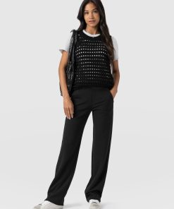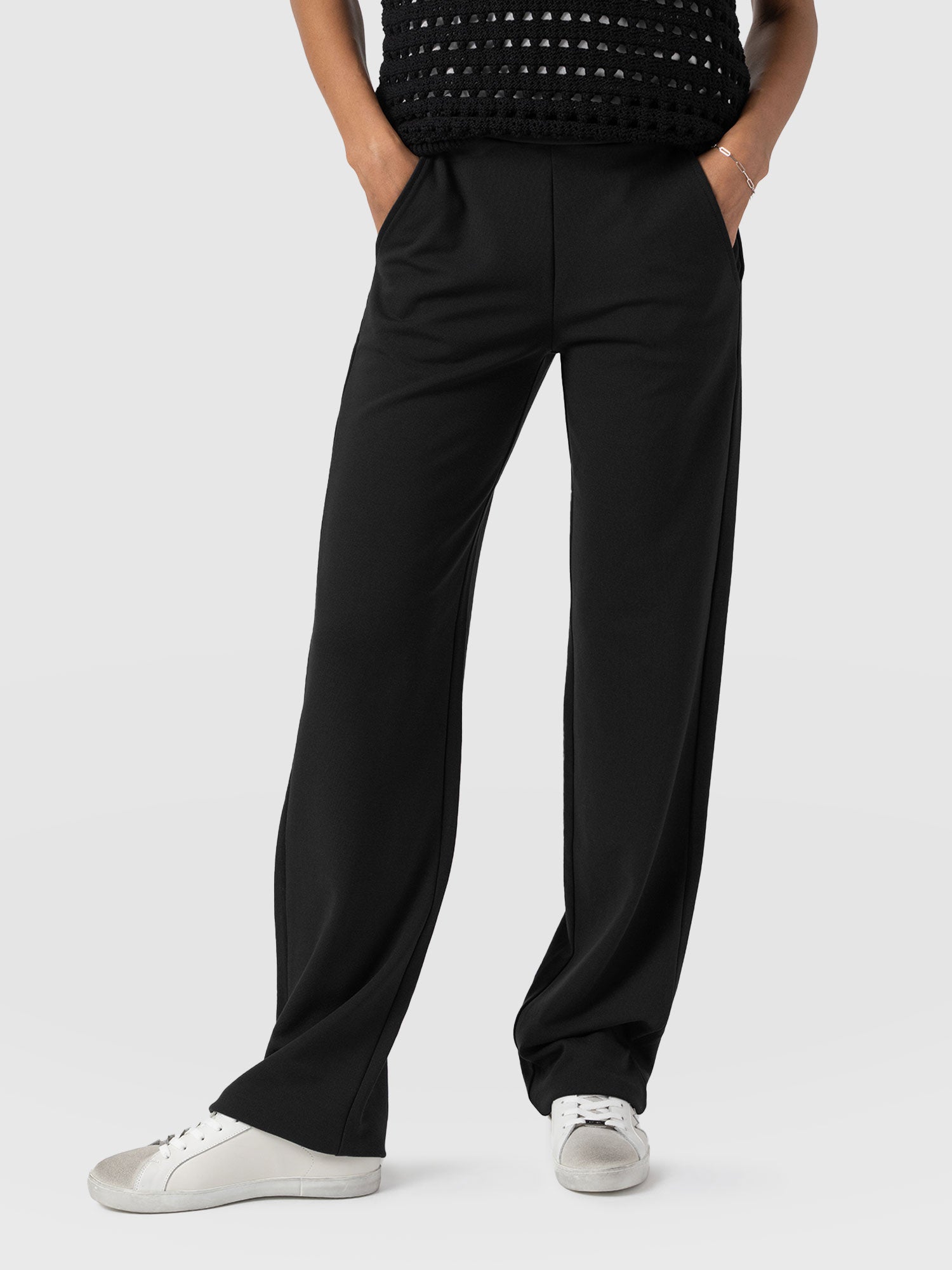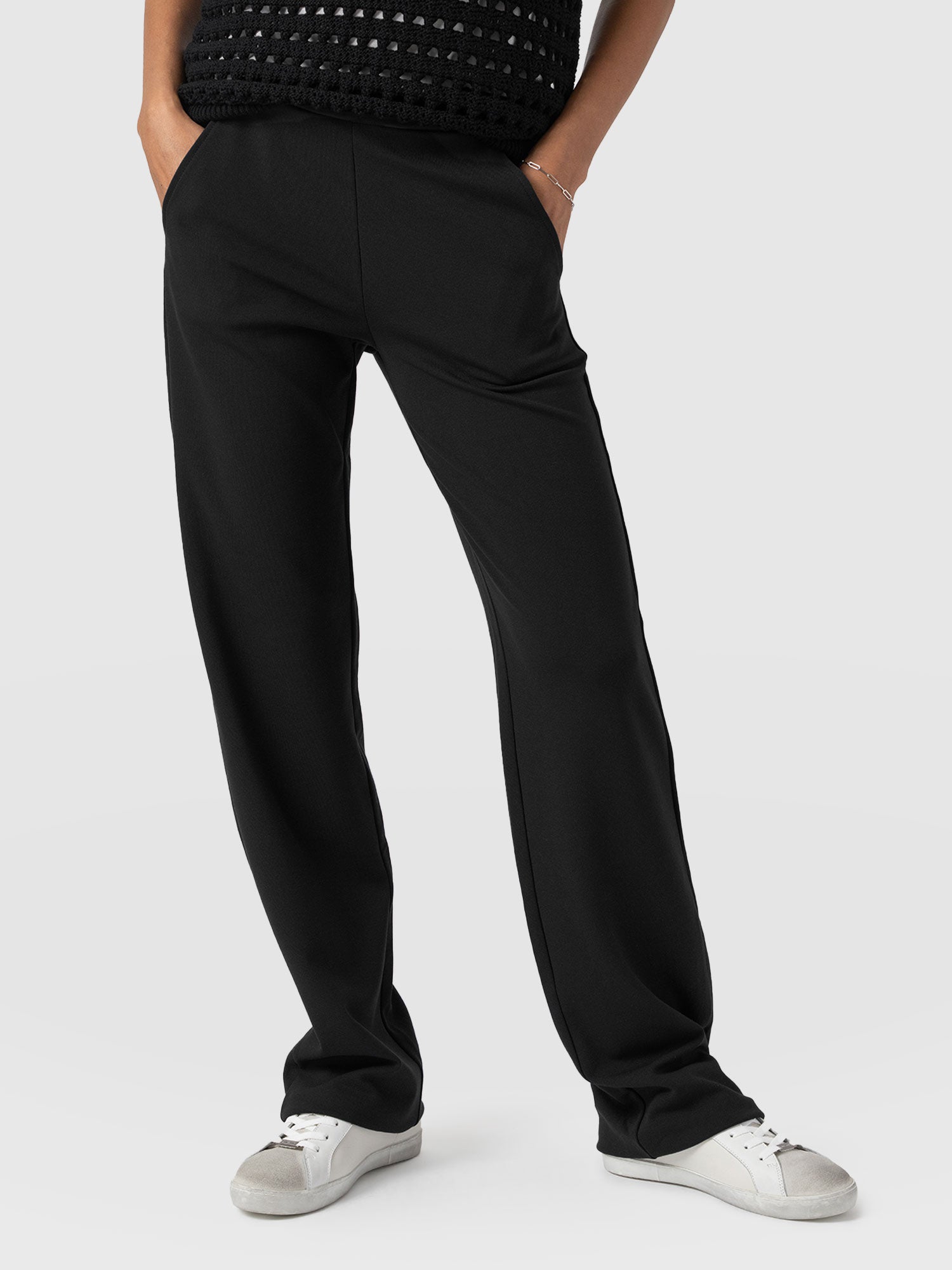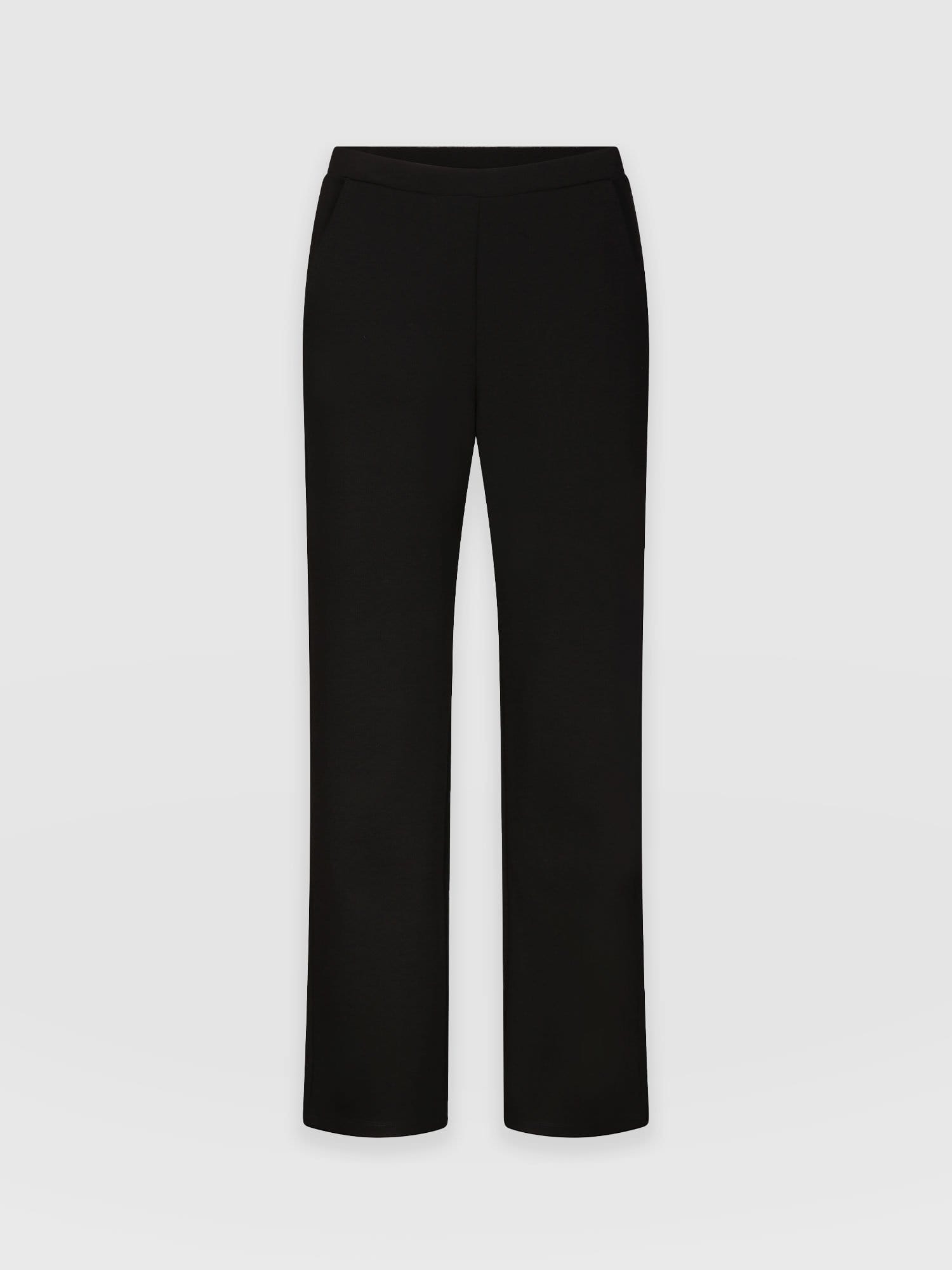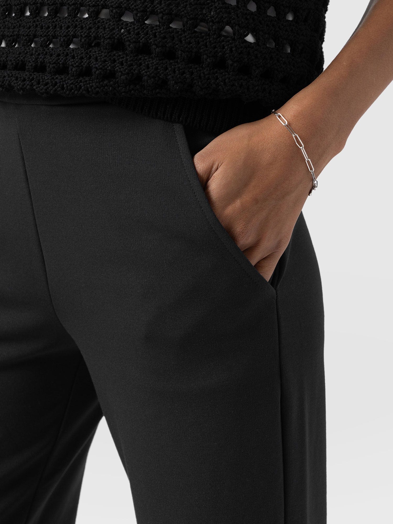 A classic, straight leg pant style in black that’s made with the softest Italian fabric that’s perfect for work and weekends. Mid-waisted with an elasticated fit for comfort and a pull-on construction. (We also added a little elastane for some stretch). Each one is handmade in our studios in Europe and finished with discrete stitching. Easily pair with sneakers for a casual, relaxed look or with heels for something smarter.
