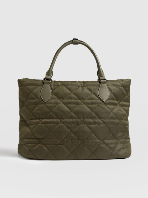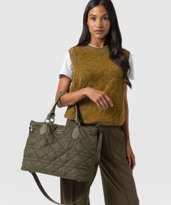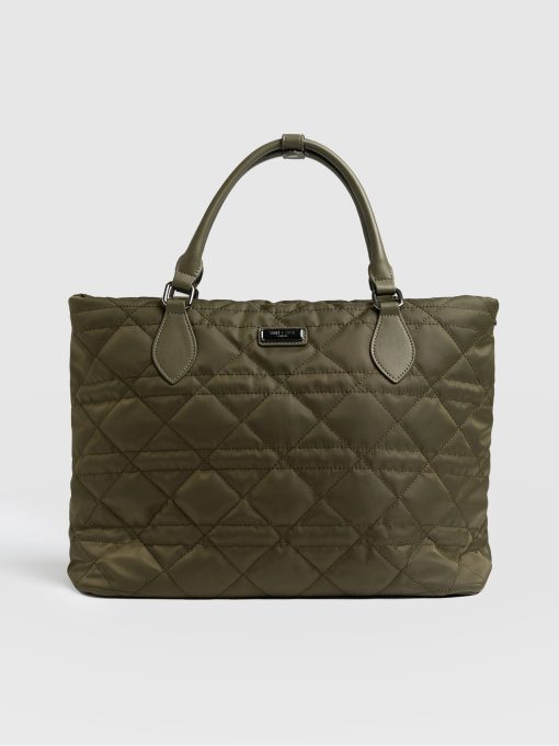Saint + Sofia Women’s Quilted Selene Shopper Bag – Khaki | Khaki
