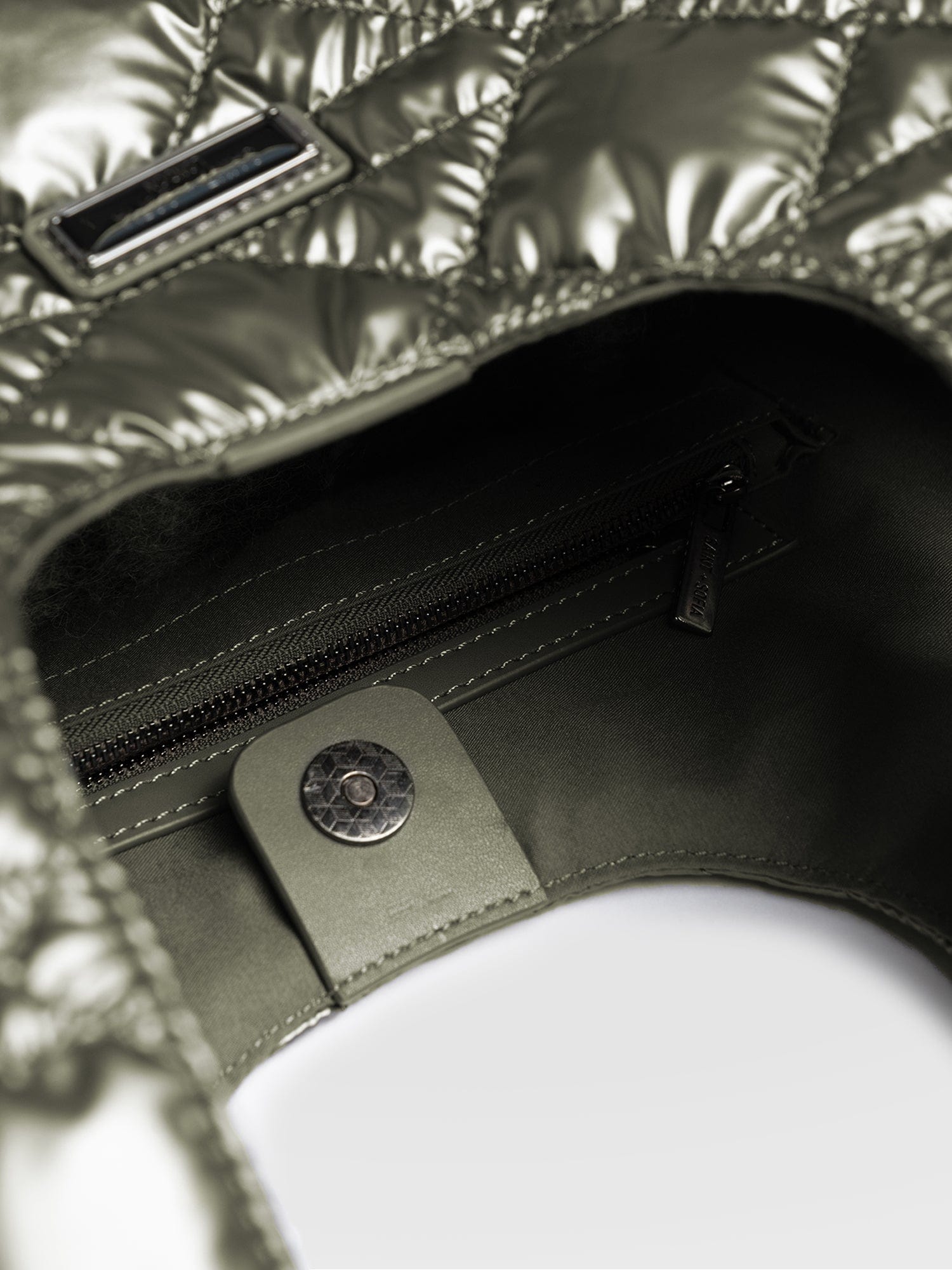 Saint + Sofia Women’s Quilted Stella Shoulder Tote Bag – Metallic Khaki | Metallic Khaki