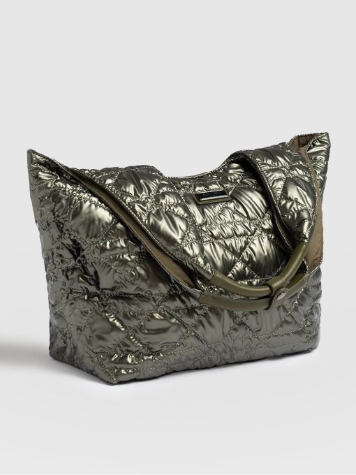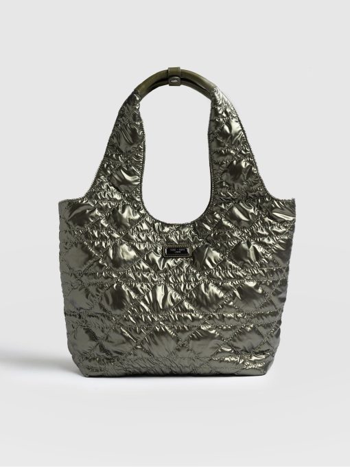 Saint + Sofia Women’s Quilted Stella Shoulder Tote Bag – Metallic Khaki | Metallic Khaki