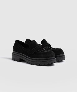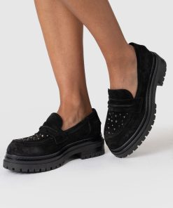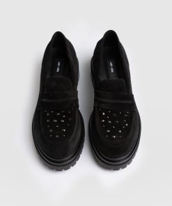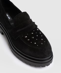 Handmade in Italy using the finest suede, the Raine Loafers in black are a classic pair to add to any wardrobe. Their chunky sole makes them perfect for creating looks with attitude, while the soft feel provides instantly comfortable wear. Plus, the hexagonal stud details that glitter the front help to add a touch of sparkle to everyday styles. Slip into them with jeans, skirts, or dresses – the choice is yours.