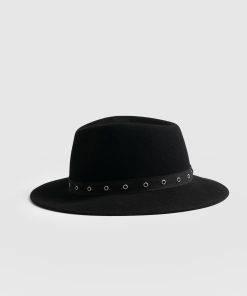 A classic fedora hat in black, with a twist. Eyelet tape along the base makes this a styling addition for any look for years to come. Each hat is hand made in Italy with the finest materials. Style with anything.
