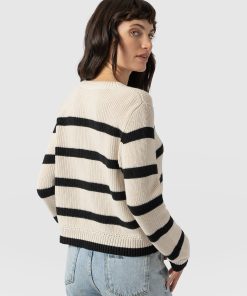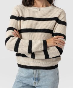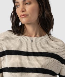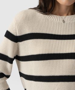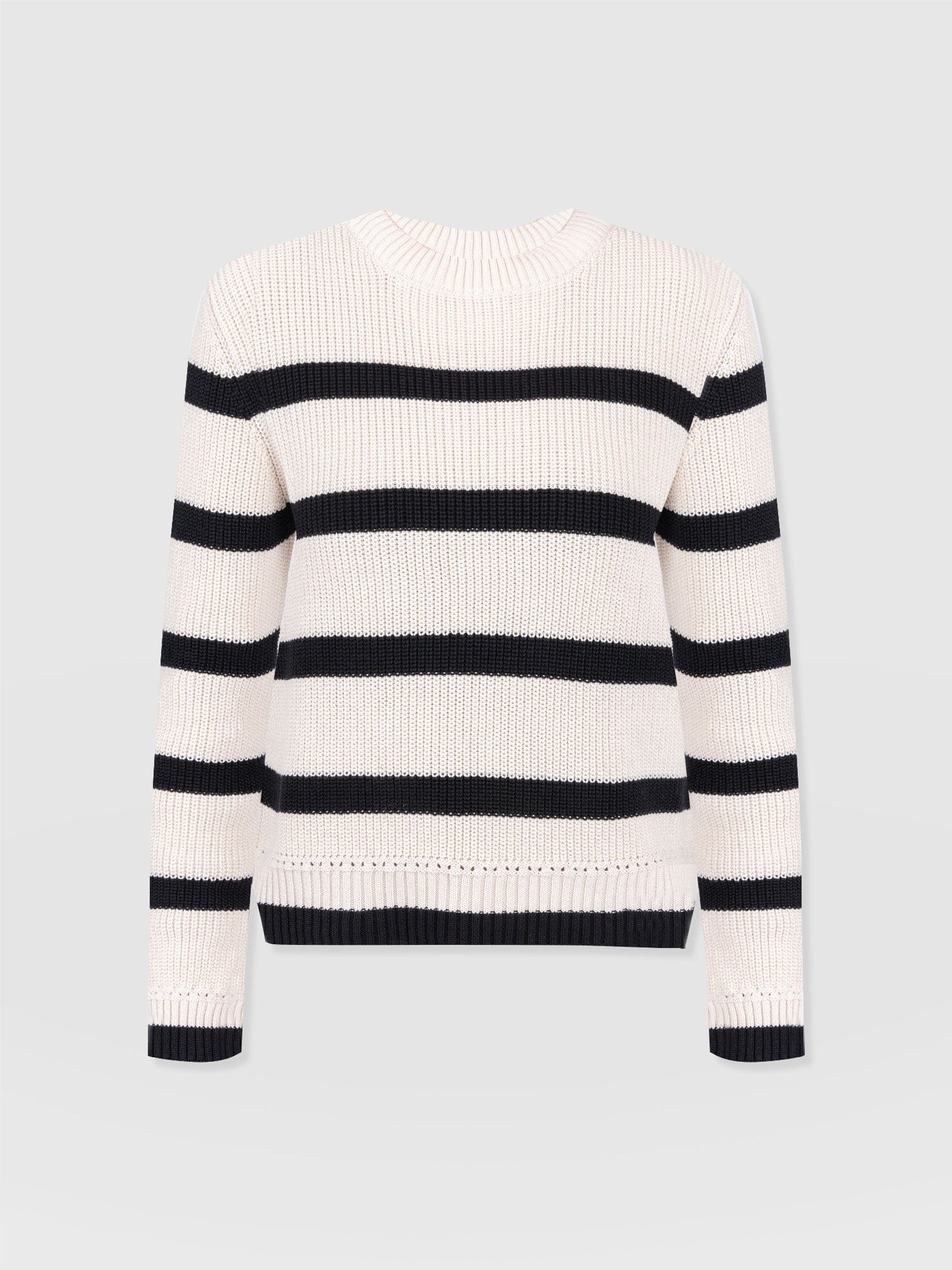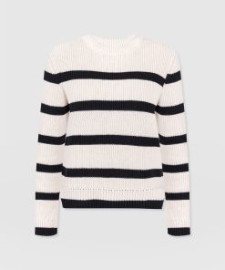 A transitional knit designed for the changing seasons, the Remy Crop Sweater in Stripe boasts a chunky rib stitch to keep you warm when the weather shifts to cooler temperatures. Its regular-fitting silhouette and crew neckline are handmade using soft and smooth organic cotton and trimmed with contrasting tipping along the cuff and hem for an elegant finish. Dress down with high-waisted jeans and trainers, or style up with the Bonham Leather Shorts and boots.