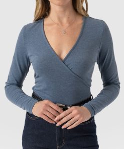 Our unique Rosa Wrap Tee in Blueis your new, favorite wrap tee. Handmade from a soft and stretchy jersey material that’s comfortable to wear all day, every day.It’s topped by a V-neckline thanks to its waist-defining wrap-around finish and features long sleeves to keep you warm. Wear yours with the matching Keller Pants for the ultimate loungewear set or with your favourite jeans for an easy daywear look.